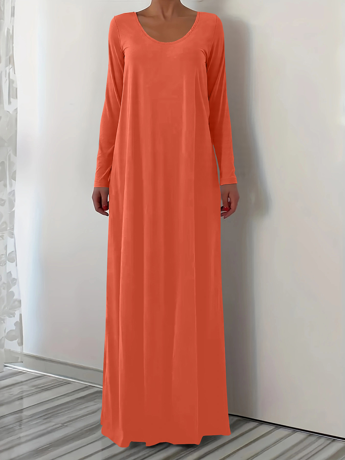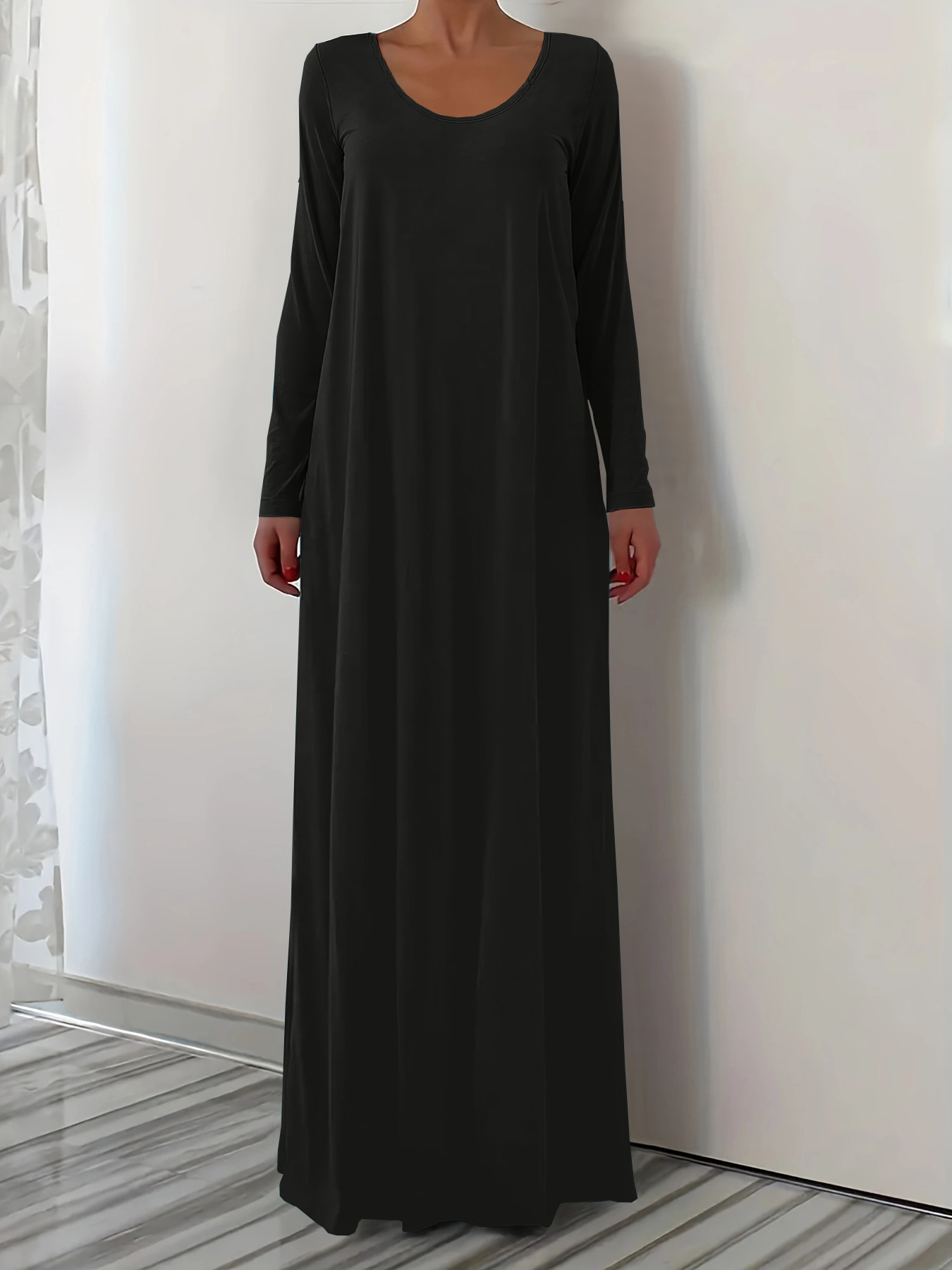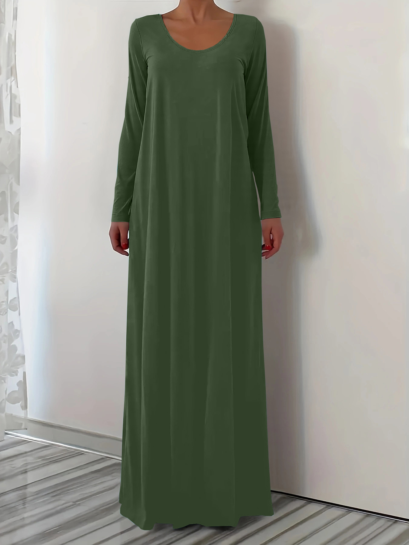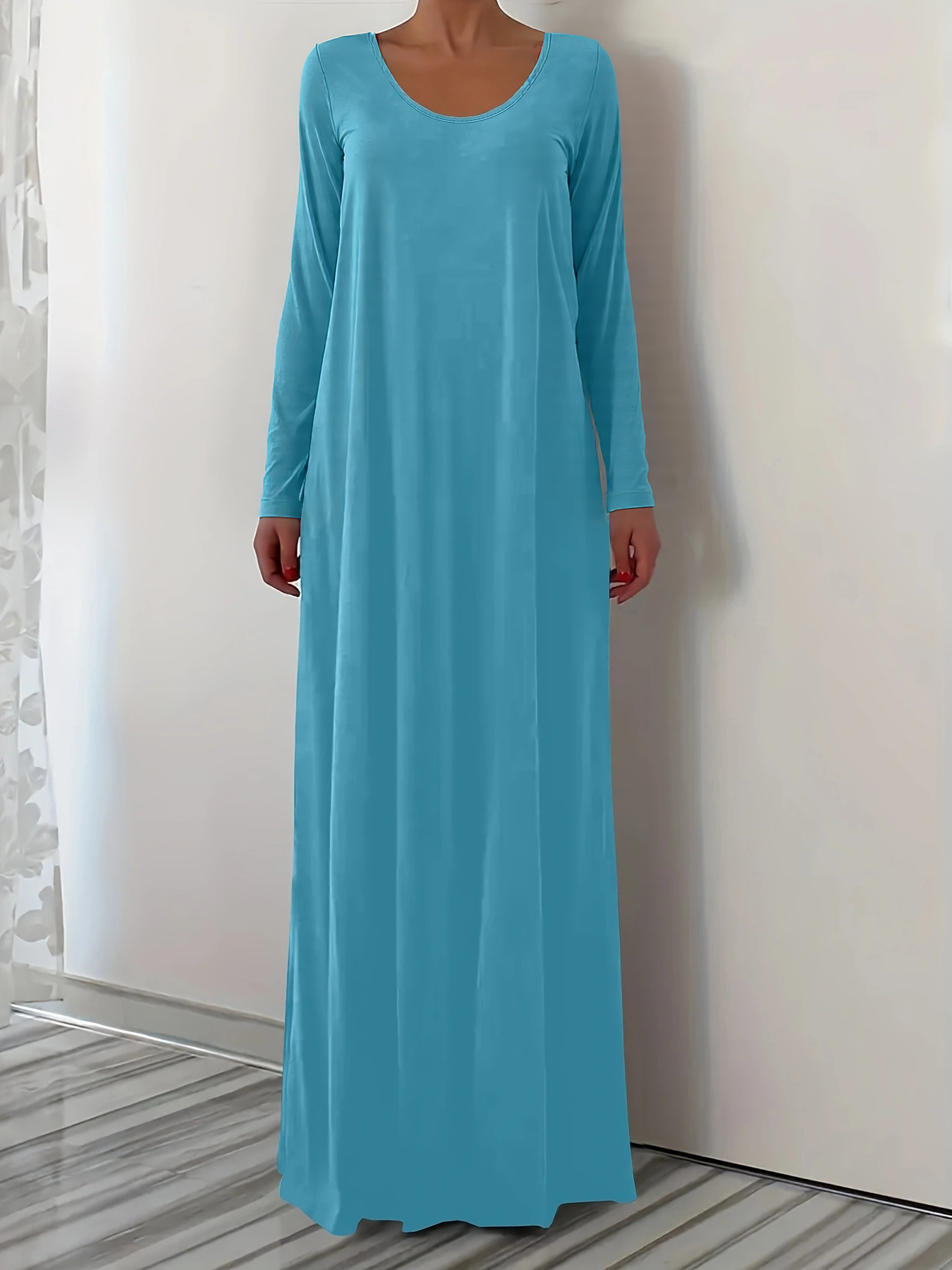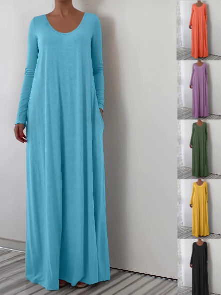 2025欧美跨境亚马逊速卖通爆款圆领长款连衣裙长袖纯色简约