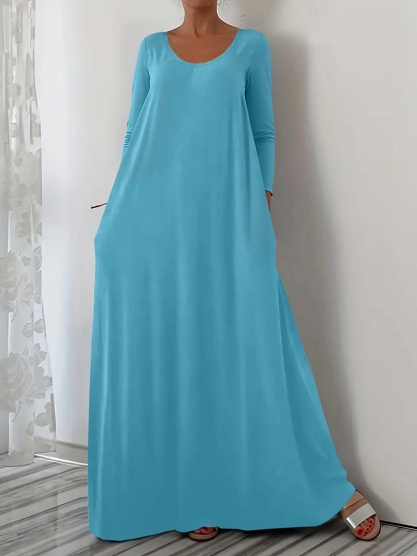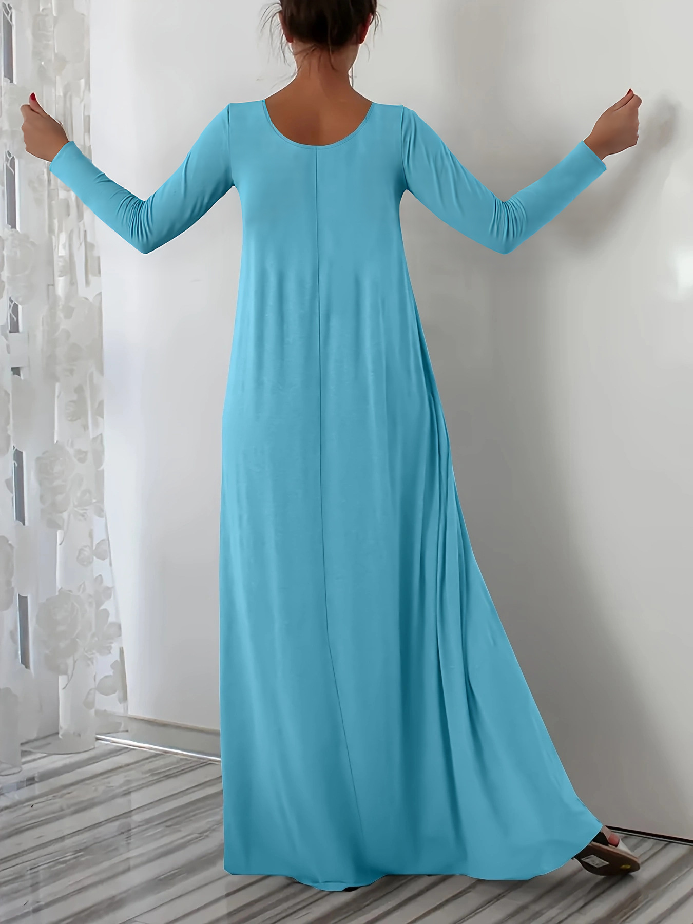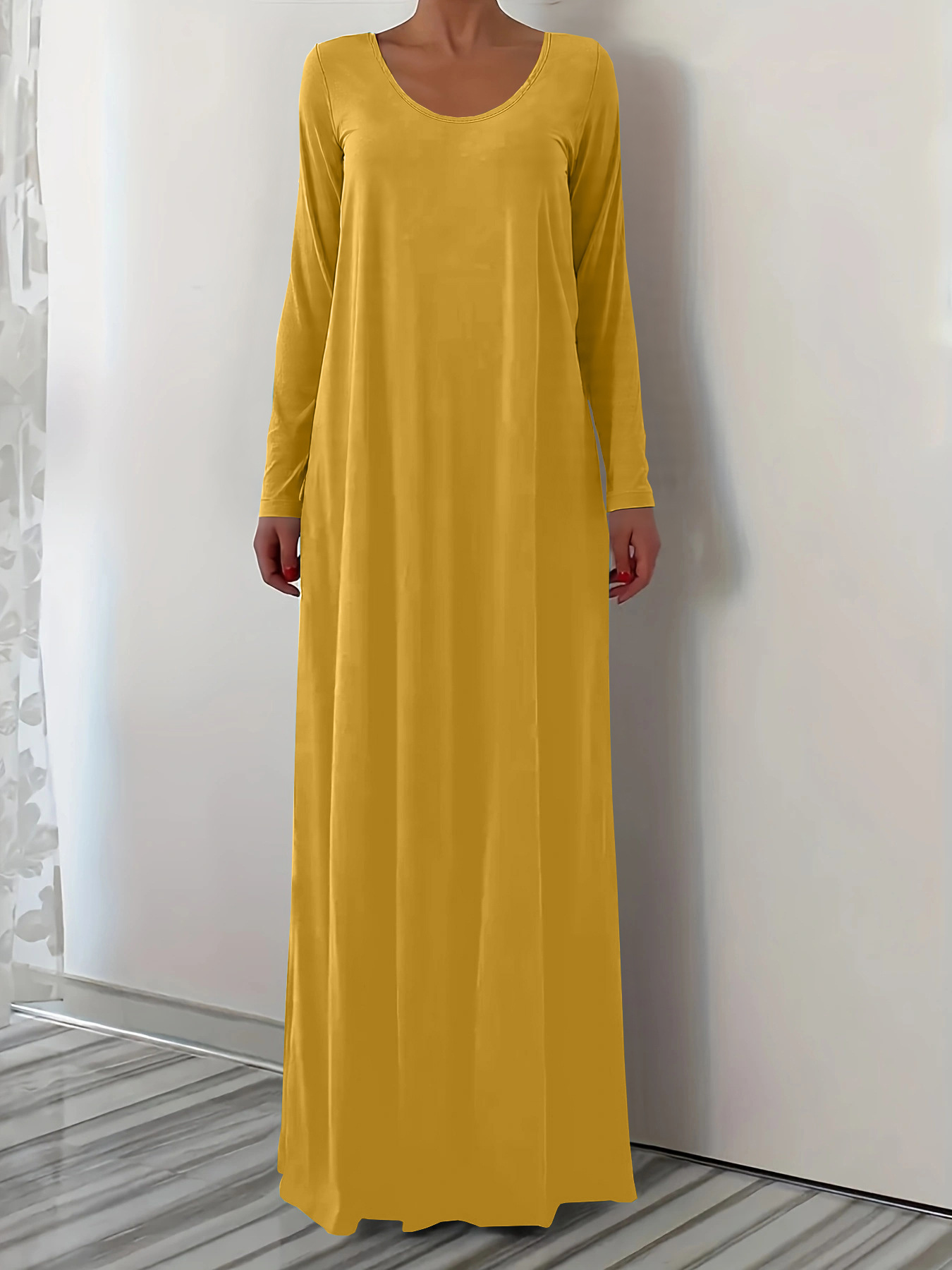2025欧美跨境亚马逊速卖通爆款圆领长款连衣裙长袖纯色简约