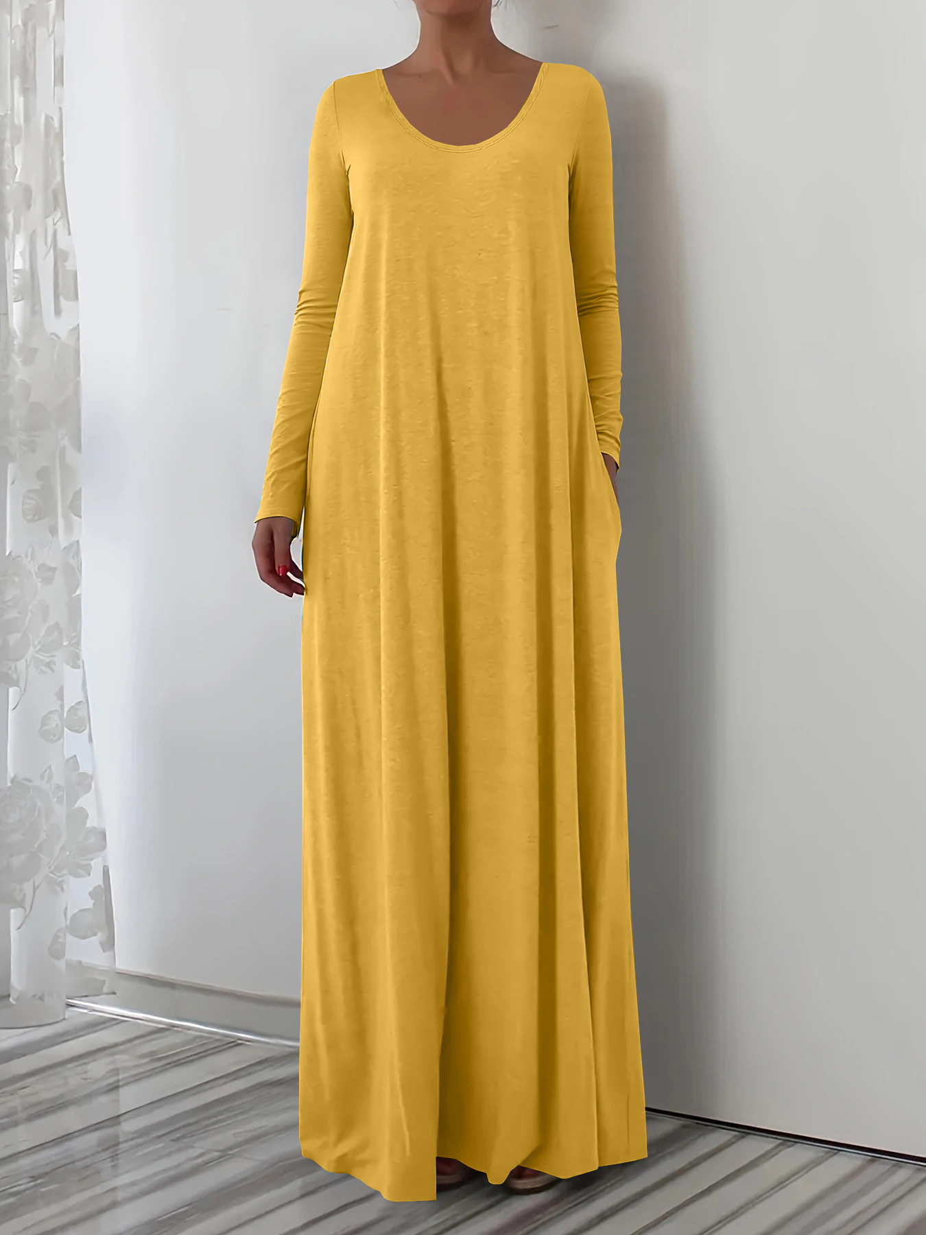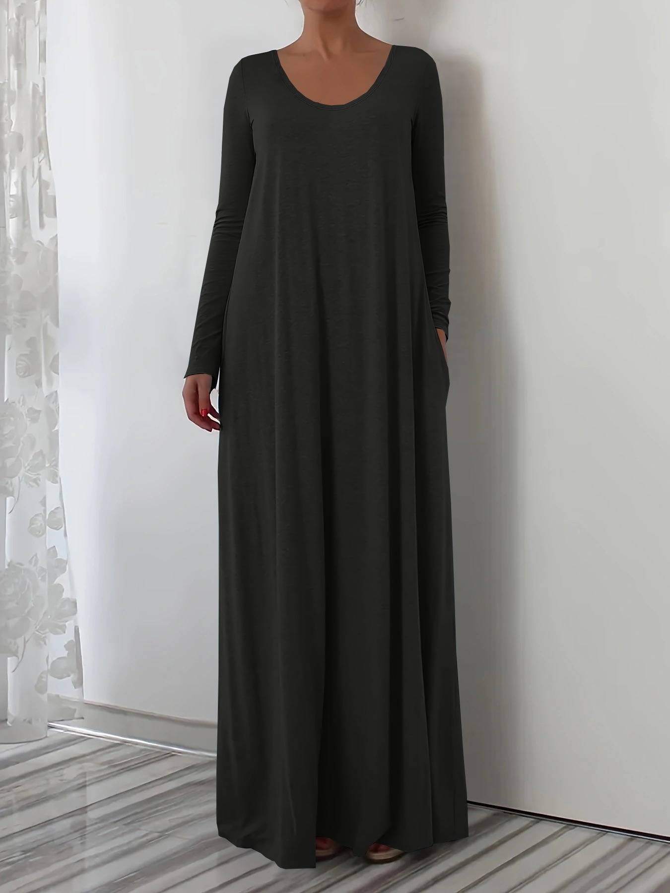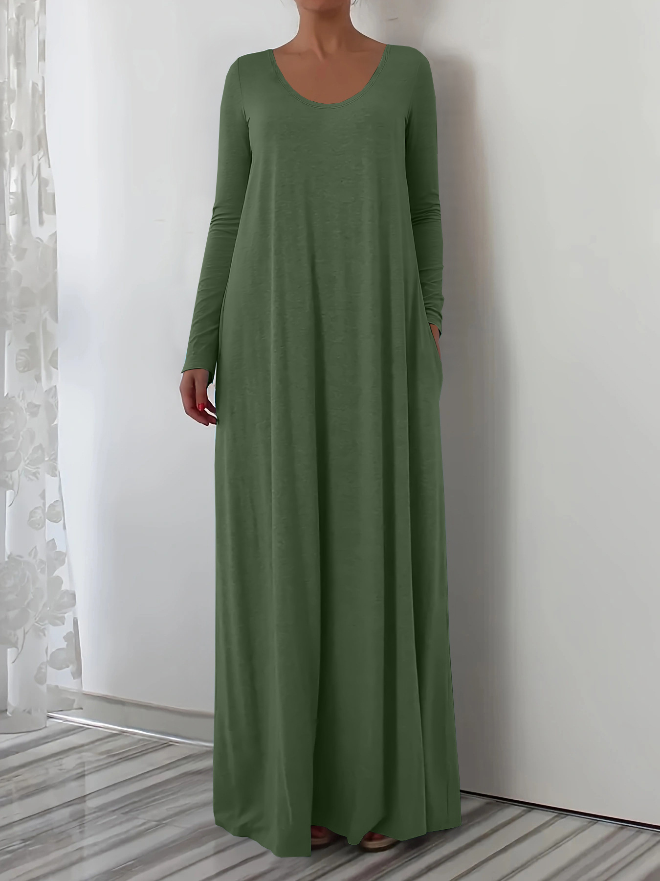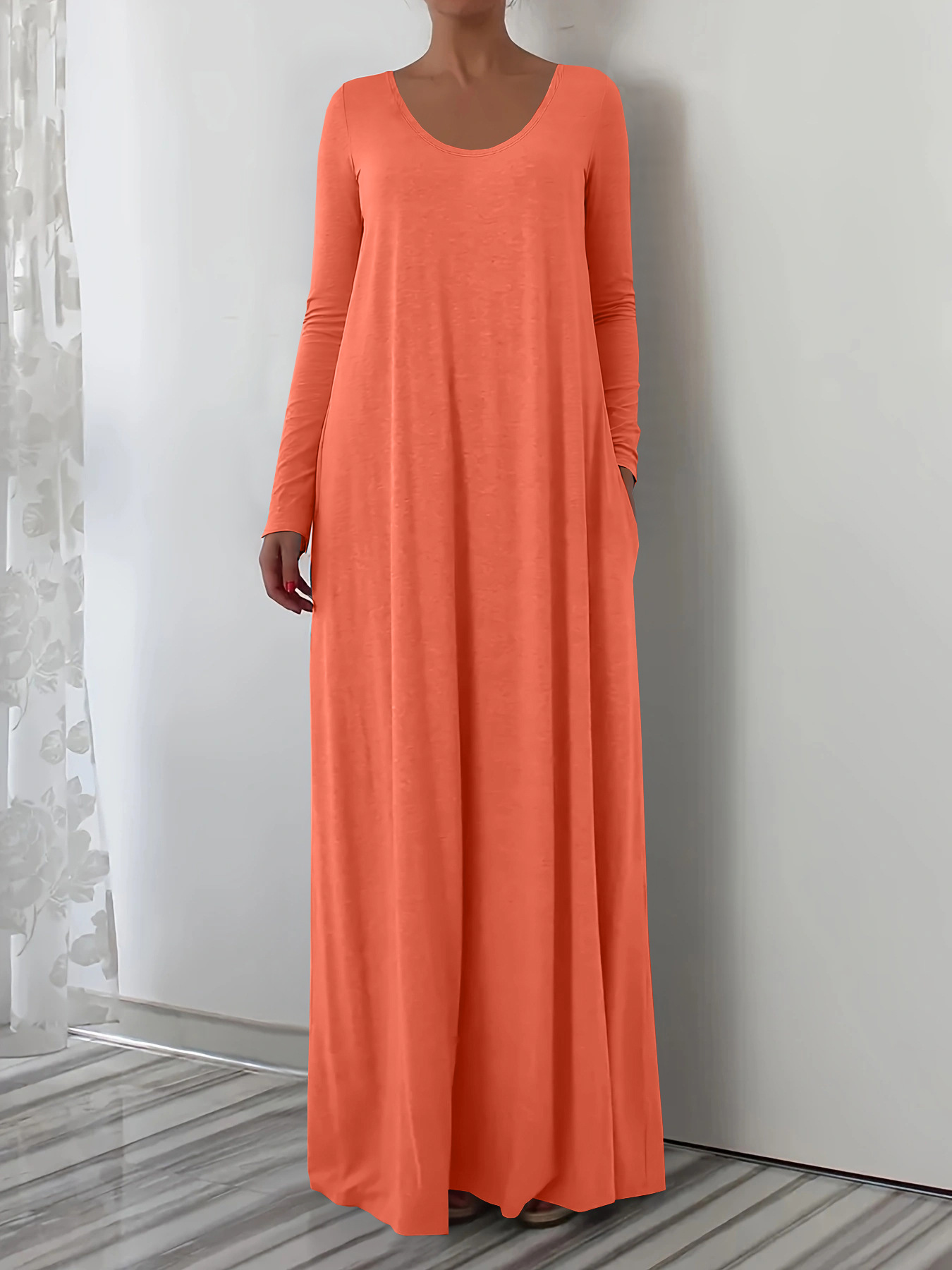 2025欧美跨境亚马逊速卖通爆款圆领长款连衣裙长袖纯色简约