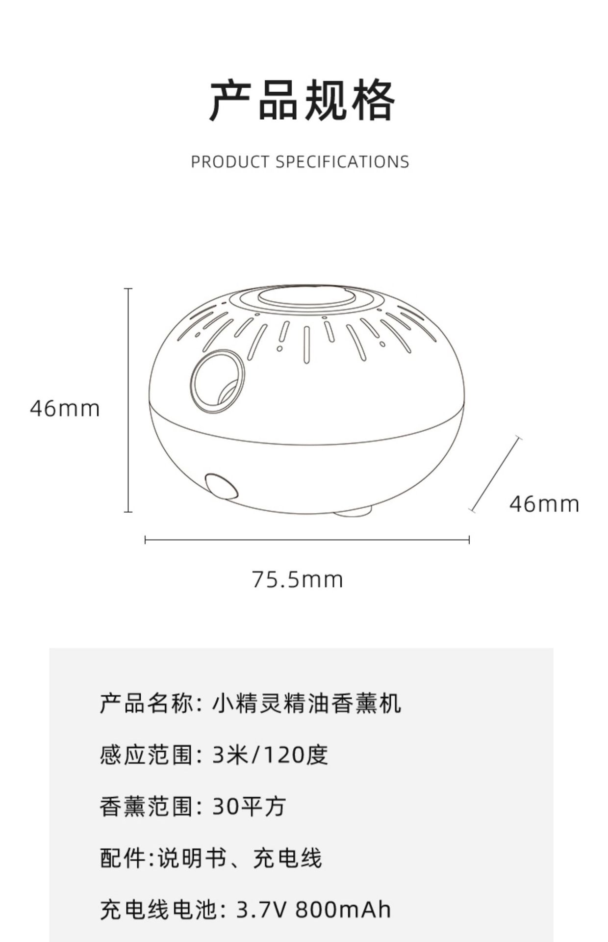 에센셜 오일 디퓨저 엘프 버블 아로마 테라피 기계 자동 향수 무선 분무 유도 아로마 테라피 기계 침실 자동차 장착형
