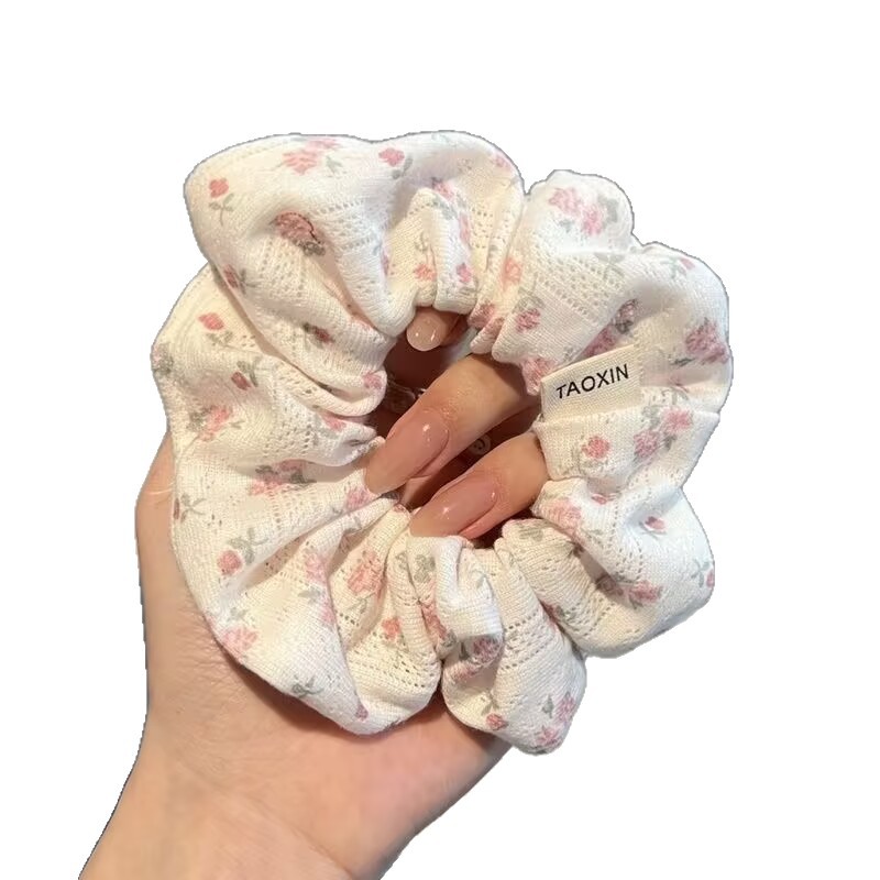 고급스러운 소녀들을 위한 달콤한 핑크 꽃무늬 머리끈, 포니테일 머리끈, 도매 신상 머리끈 액세서리